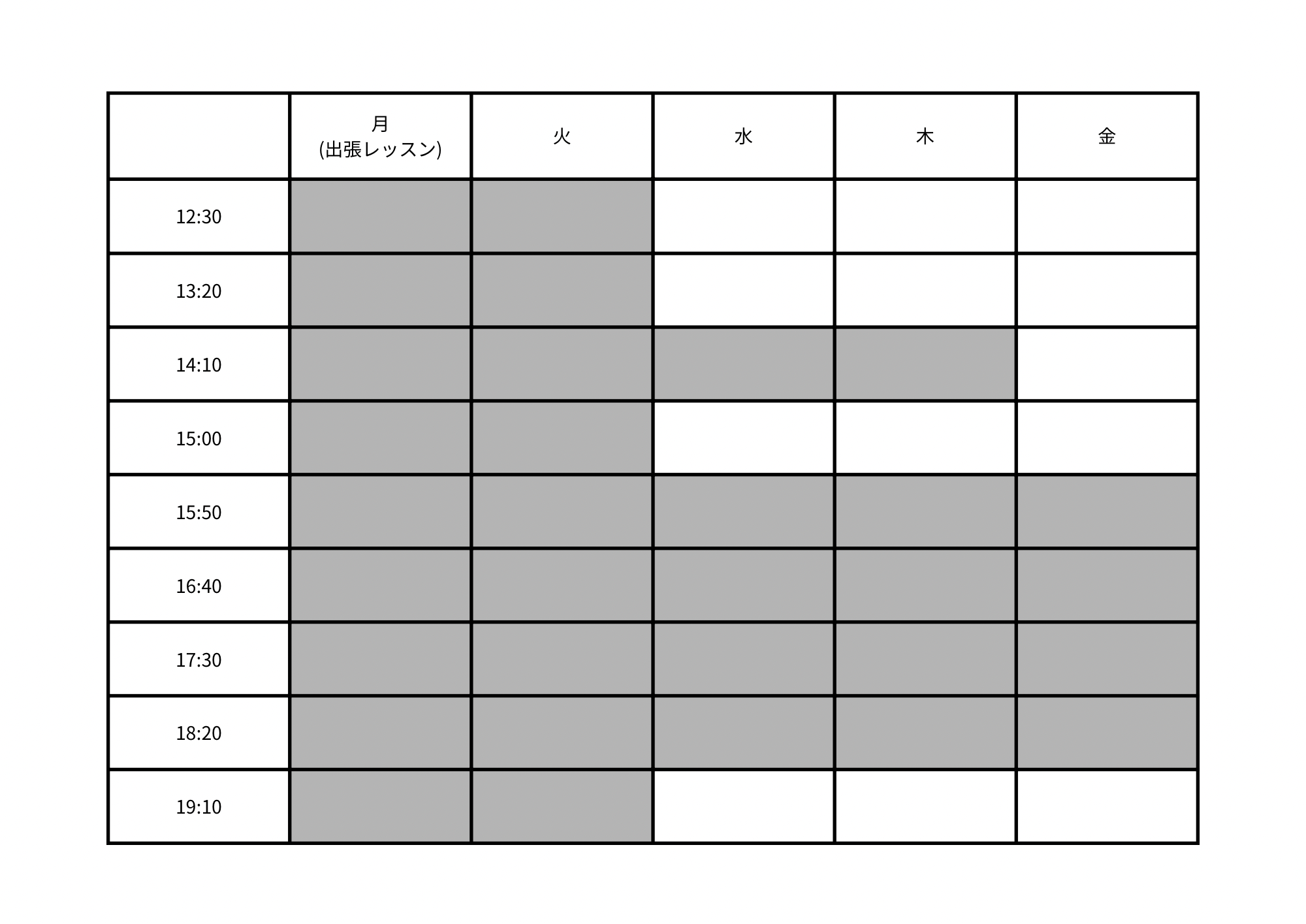 レッスンの空き枠(2026年4月現在)