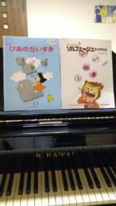 これは「プレリーディング譜」といって、五線がありません。この曲がどうしても弾きたい!というEちゃん(年長)のリクエストで作ってみました。鍵盤の所定の位置に手を置いて、そこから手の位置を移動しないで指番